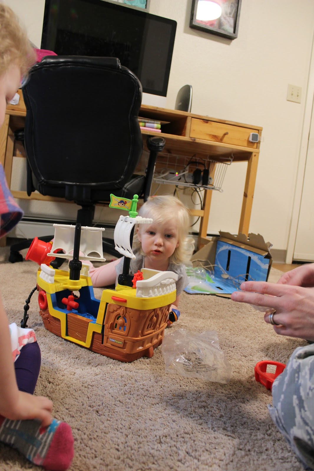 When Daddy was home for lunch we opened lots of fun presents! The pirate ship was her favorite.
